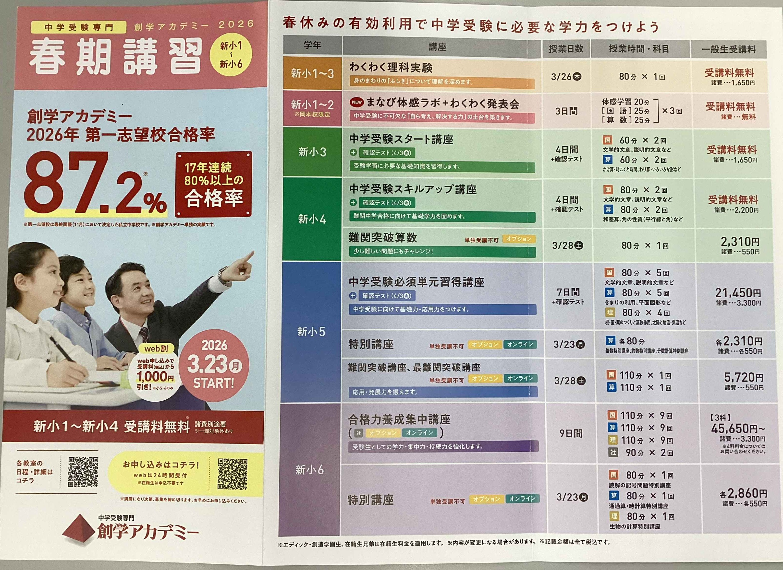 | 灘・甲陽クラス | 日 | 国算理*1 | 10:00~18:10 |